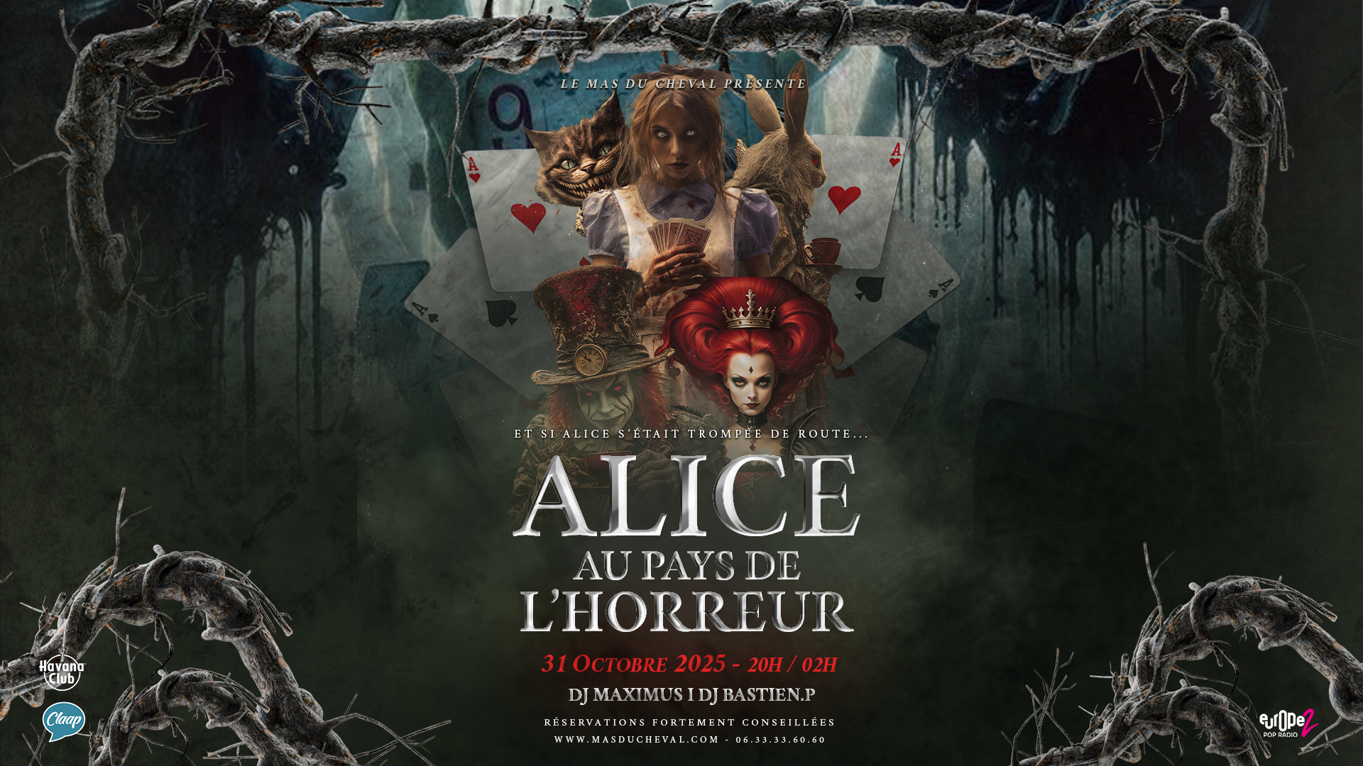 ALICE AU MAS DE L'HORREUR<br>Enfilez vos costumes les plus terrifiants et venez nous rejoindre !
